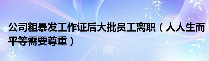 大家好,綜合小編來為大家講解下。公司粗暴發(fā)工作證后大批員工離職,人人生而平等需要尊重很多人還不知道,現(xiàn)在讓我們一起來看看吧!