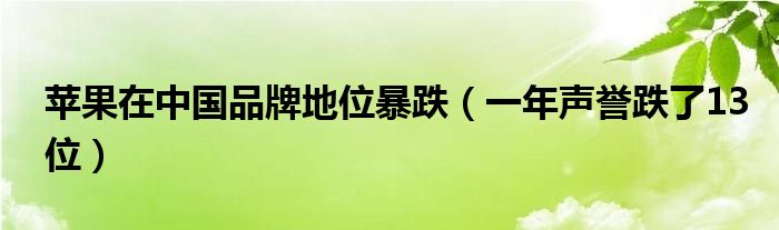 大家好,綜合小編來為大家講解下。蘋果在中國品牌地位暴跌,一年聲譽跌了13位很多人還不知道,現在讓我們一起來看看吧!