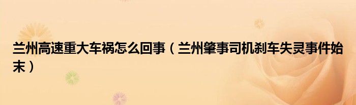 大家好,綜合小編來為大家講解下。蘭州高速重大車禍怎么回事,蘭州肇事司機剎車失靈事件始末很多人還不知道,現(xiàn)在讓我們一起來看看吧!