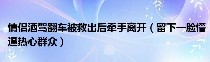 大家好,綜合小編來為大家講解下。情侶酒駕翻車被救出后牽手離開,留下一臉懵逼熱心群眾很多人還不知道,現(xiàn)在讓我們一起來看看吧!