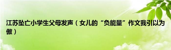 大家好,綜合小編來為大家講解下。江蘇墜亡小學生父母發聲,女兒的“負能量”作文我引以為傲很多人還不知道,現在讓我們一起來看看吧!