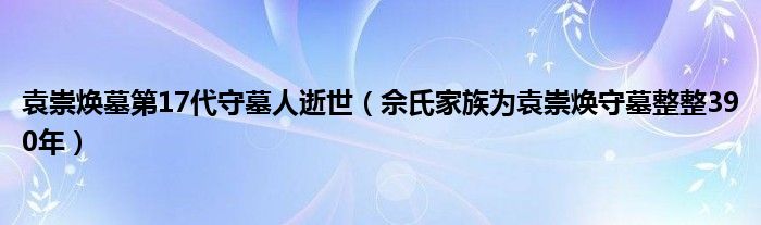 大家好,綜合小編來為大家講解下。袁崇煥墓第17代守墓人逝世,佘氏家族為袁崇煥守墓整整390年很多人還不知道,現在讓我們一起來看看吧!