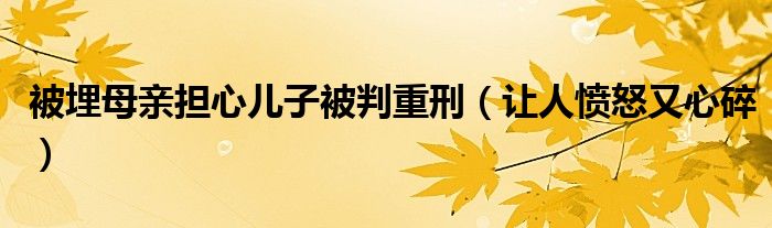 大家好,綜合小編來為大家講解下。被埋母親擔心兒子被判重刑,讓人憤怒又心碎很多人還不知道,現在讓我們一起來看看吧!