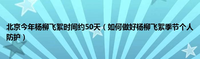 大家好,綜合小編來為大家講解下。北京今年楊柳飛絮時間約50天,如何做好楊柳飛絮季節(jié)個人防護很多人還不知道,現在讓我們一起來看看吧!