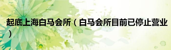 大家好,綜合小編來為大家講解下。起底上海白馬會所,白馬會所目前已停止營業很多人還不知道,現在讓我們一起來看看吧!