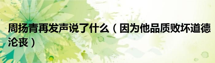 大家好,綜合小編來為大家講解下。周揚青再發聲說了什么,因為他品質敗壞道德淪喪很多人還不知道,現在讓我們一起來看看吧!