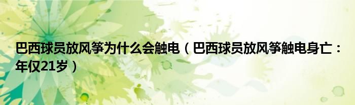 大家好,綜合小編來為大家講解下。巴西球員放風箏為什么會觸電,巴西球員放風箏觸電身亡:年僅21歲很多人還不知道,現在讓我們一起來看看吧!