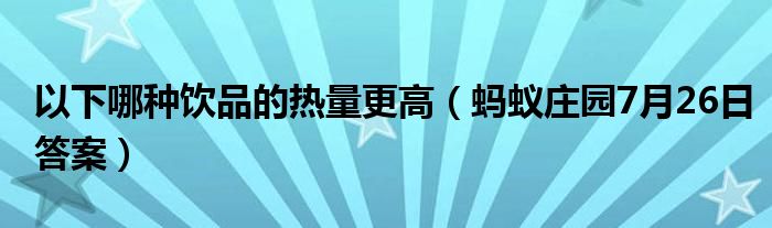 大家好,綜合小編來為大家講解下。以下哪種飲品的熱量更高,螞蟻莊園7月26日答案很多人還不知道,現在讓我們一起來看看吧!