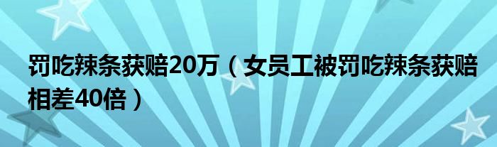 大家好,綜合小編來為大家講解下。罰吃辣條獲賠20萬,女員工被罰吃辣條獲賠相差40倍很多人還不知道,現(xiàn)在讓我們一起來看看吧!