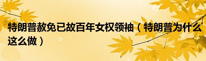 大家好,綜合小編來(lái)為大家講解下。特朗普赦免已故百年女權(quán)領(lǐng)袖,特朗普為什么這么做很多人還不知道,現(xiàn)在讓我們一起來(lái)看看吧!