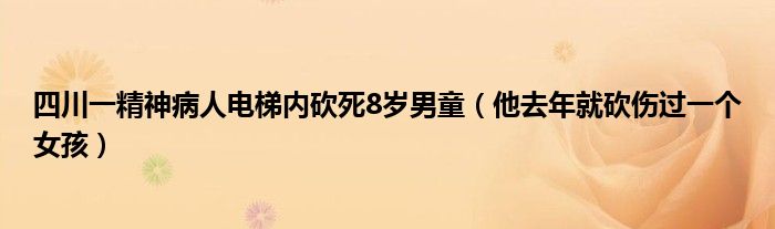 大家好,綜合小編來為大家講解下。四川一精神病人電梯內砍死8歲男童,他去年就砍傷過一個女孩很多人還不知道,現在讓我們一起來看看吧!