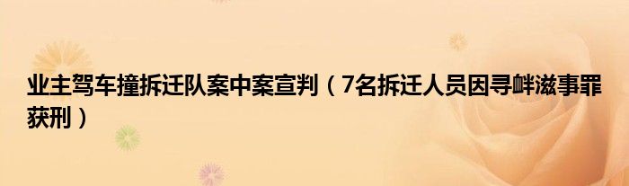 大家好,綜合小編來為大家講解下。業(yè)主駕車撞拆遷隊案中案宣判,7名拆遷人員因?qū)め呑淌伦铽@刑很多人還不知道,現(xiàn)在讓我們一起來看看吧!