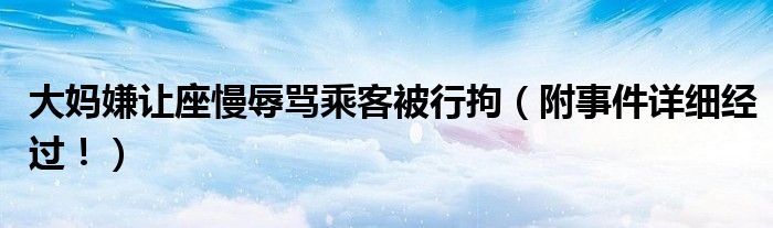 大家好,綜合小編來為大家講解下。大媽嫌讓座慢辱罵乘客被行拘,附事件詳細經過!很多人還不知道,現在讓我們一起來看看吧!