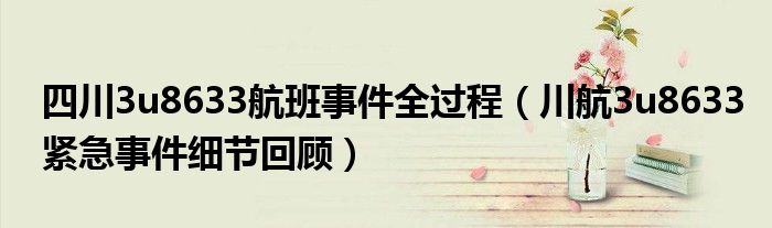 大家好,綜合小編來為大家講解下。四川3u8633航班事件全過程,川航3u8633緊急事件細節回顧很多人還不知道,現在讓我們一起來看看吧!