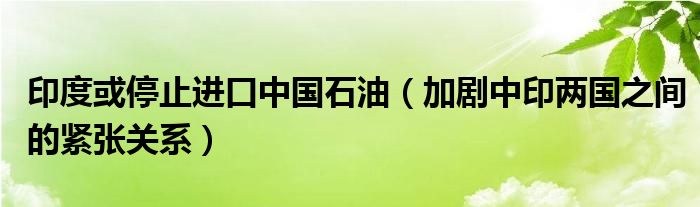 大家好,綜合小編來為大家講解下。印度或停止進口中國石油,加劇中印兩國之間的緊張關系很多人還不知道,現在讓我們一起來看看吧!