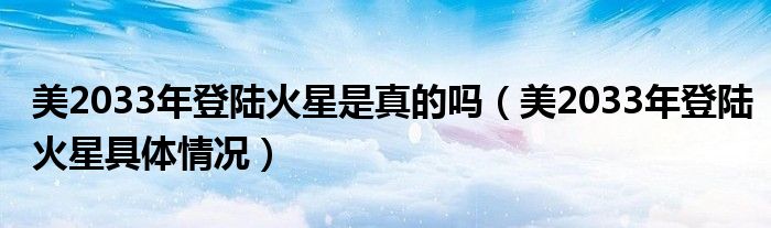 大家好,綜合小編來為大家講解下。美2033年登陸火星是真的嗎,美2033年登陸火星具體情況很多人還不知道,現在讓我們一起來看看吧!