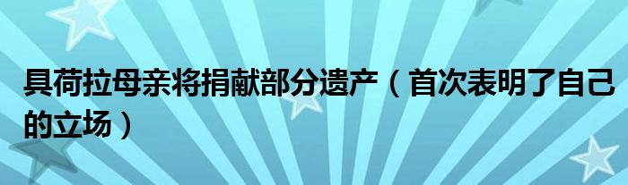 大家好,綜合小編來為大家講解下。具荷拉母親將捐獻部分遺產,首次表明了自己的立場很多人還不知道,現在讓我們一起來看看吧!