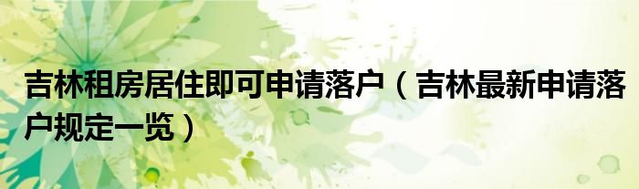 大家好,綜合小編來為大家講解下。吉林租房居住即可申請落戶,吉林最新申請落戶規定一覽很多人還不知道,現在讓我們一起來看看吧!