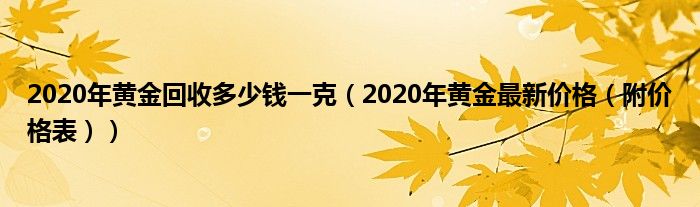 大家好,綜合小編來為大家講解下。2020年黃金回收多少錢一克,2020年黃金最新價格,附價格表很多人還不知道,現(xiàn)在讓我們一起來看看吧!