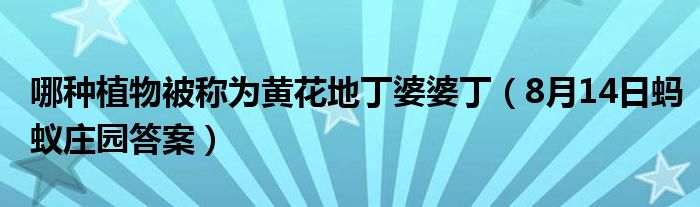 大家好,綜合小編來為大家講解下。哪種植物被稱為黃花地丁婆婆丁,8月14日螞蟻莊園答案很多人還不知道,現在讓我們一起來看看吧!