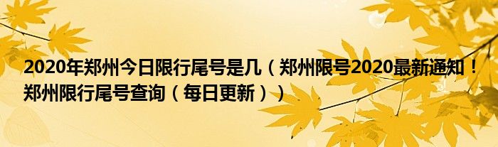 大家好,綜合小編來為大家講解下。2020年鄭州今日限行尾號是幾,鄭州限號2020最新通知!鄭州限行尾號查詢,每日更新很多人還不知道,現在讓我們一起來看看吧!
