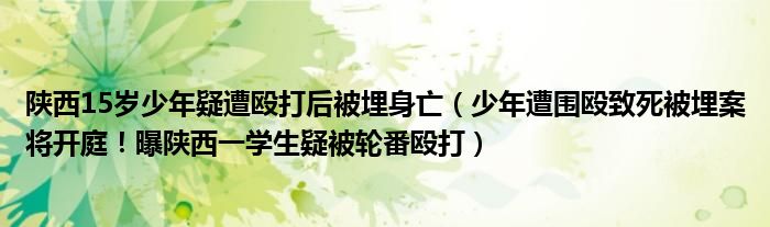 大家好,綜合小編來為大家講解下。陜西15歲少年疑遭毆打后被埋身亡,少年遭圍毆致死被埋案將開庭!曝陜西一學(xué)生疑被輪番毆打很多人還不知道,現(xiàn)在讓我們一起來看看吧!