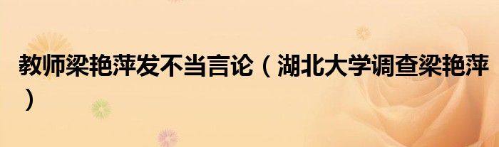 大家好,綜合小編來為大家講解下。教師梁艷萍發不當言論,湖北大學調查梁艷萍很多人還不知道,現在讓我們一起來看看吧!