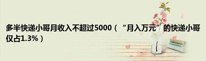 大家好,綜合小編來為大家講解下。多半快遞小哥月收入不超過5000,“月入萬元”的快遞小哥僅占1.3%很多人還不知道,現在讓我們一起來看看吧!