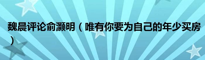 大家好,綜合小編來(lái)為大家講解下。魏晨評(píng)論俞灝明,唯有你要為自己的年少買(mǎi)房很多人還不知道,現(xiàn)在讓我們一起來(lái)看看吧!