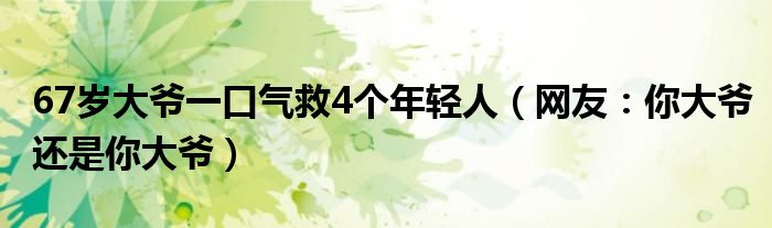 大家好,綜合小編來為大家講解下。67歲大爺一口氣救4個年輕人,網友:你大爺還是你大爺很多人還不知道,現在讓我們一起來看看吧!