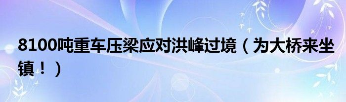 8100噸重車壓梁應對洪峰過境 為大橋來坐鎮!