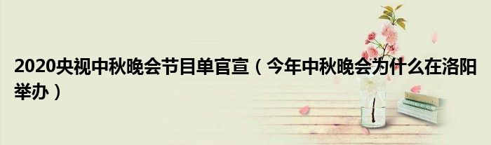 大家好,綜合小編來為大家講解下。2020央視中秋晚會節目單官宣,今年中秋晚會為什么在洛陽舉辦很多人還不知道,現在讓我們一起來看看吧!