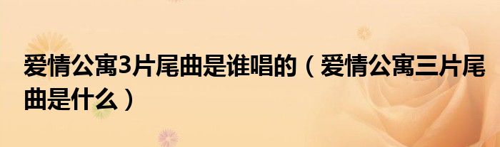 大家好,綜合小編來為大家講解下。愛情公寓3片尾曲是誰唱的,愛情公寓三片尾曲是什么很多人還不知道,現在讓我們一起來看看吧!