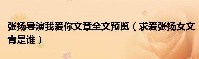 大家好,綜合小編來(lái)為大家講解下。張揚(yáng)導(dǎo)演我愛(ài)你文章全文預(yù)覽,求愛(ài)張揚(yáng)女文青是誰(shuí)很多人還不知道,現(xiàn)在讓我們一起來(lái)看看吧!