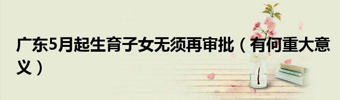 大家好,綜合小編來為大家講解下。廣東5月起生育子女無須再審批,有何重大意義很多人還不知道,現在讓我們一起來看看吧!