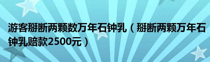 大家好,綜合小編來(lái)為大家講解下。游客掰斷兩顆數(shù)萬(wàn)年石鐘乳,掰斷兩顆萬(wàn)年石鐘乳賠款2500元很多人還不知道,現(xiàn)在讓我們一起來(lái)看看吧!