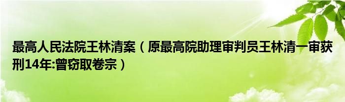 【原最高院助理審判員王林清一審獲刑14年:曾竊取卷宗】受賄、非法獲取國(guó)家秘密,王林清一審獲刑14年。曾擔(dān)任最高人民法院民一庭助理審判員。