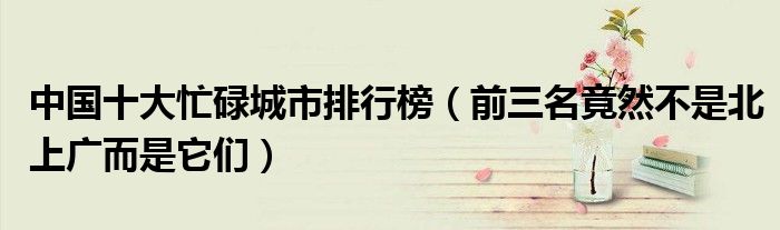 大家好,綜合小編來為大家講解下。中國十大忙碌城市排行榜,前三名竟然不是北上廣而是它們很多人還不知道,現在讓我們一起來看看吧!
