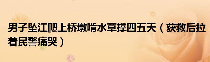大家好,綜合小編來為大家講解下。男子墜江爬上橋墩啃水草撐四五天,獲救后拉著民警痛哭很多人還不知道,現在讓我們一起來看看吧!