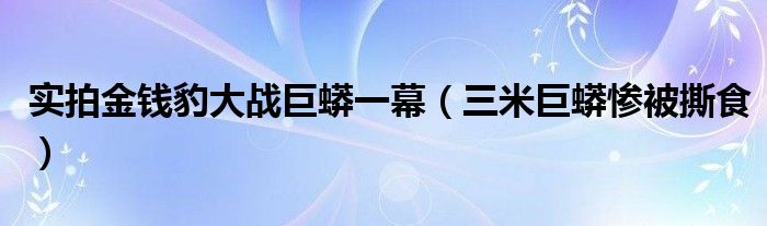 大家好,綜合小編來為大家講解下。實拍金錢豹大戰巨蟒一幕,三米巨蟒慘被撕食很多人還不知道,現在讓我們一起來看看吧!