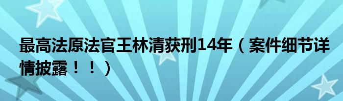大家好,綜合小編來為大家講解下。最高法原法官王林清獲刑14年,案件細節詳情披露!!很多人還不知道,現在讓我們一起來看看吧!