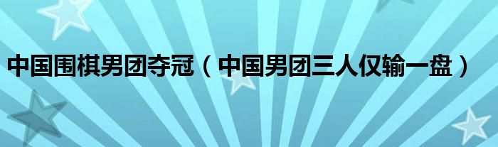 大家好,綜合小編來為大家講解下。中國圍棋男團奪冠,中國男團三人僅輸一盤很多人還不知道,現在讓我們一起來看看吧!