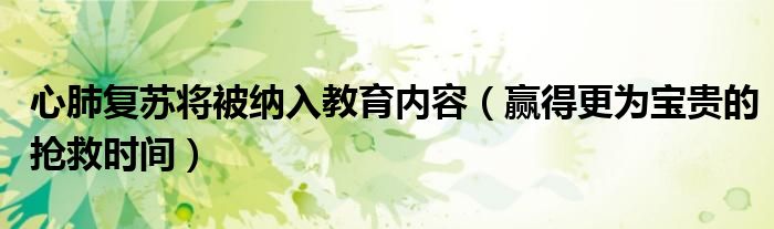 大家好,綜合小編來為大家講解下。心肺復(fù)蘇將被納入教育內(nèi)容,贏得更為寶貴的搶救時(shí)間很多人還不知道,現(xiàn)在讓我們一起來看看吧!
