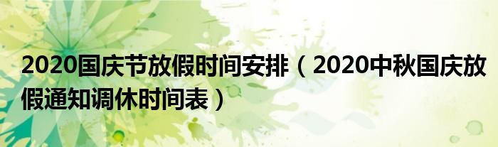 大家好,綜合小編來為大家講解下。2020國慶節放假時間安排,2020中秋國慶放假通知調休時間表很多人還不知道,現在讓我們一起來看看吧!