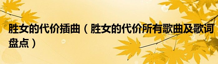 大家好,綜合小編來為大家講解下。勝女的代價(jià)插曲,勝女的代價(jià)所有歌曲及歌詞盤點(diǎn)很多人還不知道,現(xiàn)在讓我們一起來看看吧!