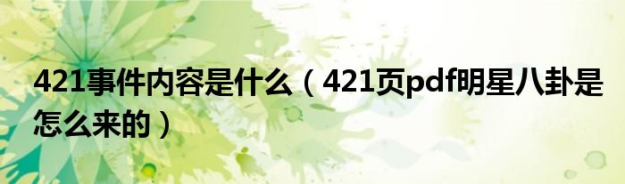 大家好,綜合小編來為大家講解下。421事件內容是什么,421頁pdf明星八卦是怎么來的很多人還不知道,現在讓我們一起來看看吧!