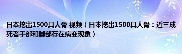 大家好,綜合小編來為大家講解下。日本挖出1500具人骨 視頻,日本挖出1500具人骨:近三成死者手部和腳部存在病變現(xiàn)象很多人還不知道,現(xiàn)在讓我們一起來看看吧!