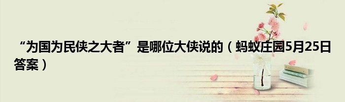 大家好,綜合小編來為大家講解下。“為國為民俠之大者”是哪位大俠說的,螞蟻莊園5月25日答案很多人還不知道,現在讓我們一起來看看吧!