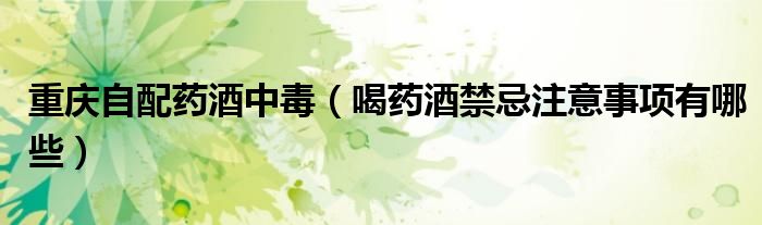 大家好,綜合小編來為大家講解下。重慶自配藥酒中毒,喝藥酒禁忌注意事項有哪些很多人還不知道,現在讓我們一起來看看吧!