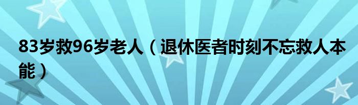 大家好,綜合小編來為大家講解下。83歲救96歲老人,退休醫者時刻不忘救人本能很多人還不知道,現在讓我們一起來看看吧!